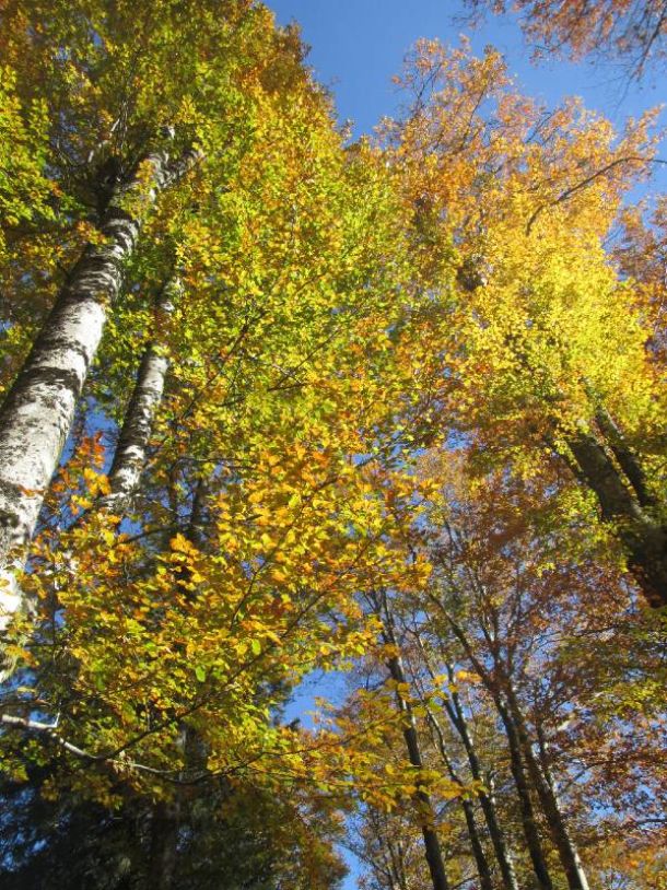Sont-ils intéressés par les insectes qu’ils ramènent parfois dans des petites boites ad hoc, regardent-ils les fourmilières ? Notre fils nous signale régulièrement « des autoroutes de fourmis ». Toucher les écorces révèle leur diversité : plutôt lisses pour le hêtre ou le noisetier, bosselées pour le chêne, collantes pour les résineux ou parcheminées pour les bouleaux sur lesquelles on peut écrire. Pister les animaux et rechercher des indices de poils, de crottes, de plumes et d’empreintes est une autre activité susceptible de passionner les enfants. Avec un peu de chance, vous croiserez un renard ou un chevreuil si vous sortez tôt ou évitez les lieux fréquentés. Pour vous inspirer, je vous recommande le livre « Promenades en forêt »[1]. Dans le registre poétique, j’aime beaucoup « la chanson de l’arbre »[2], histoire d’automne entre un arbre et un oiseau, illustré dans un univers coloré et graphique.